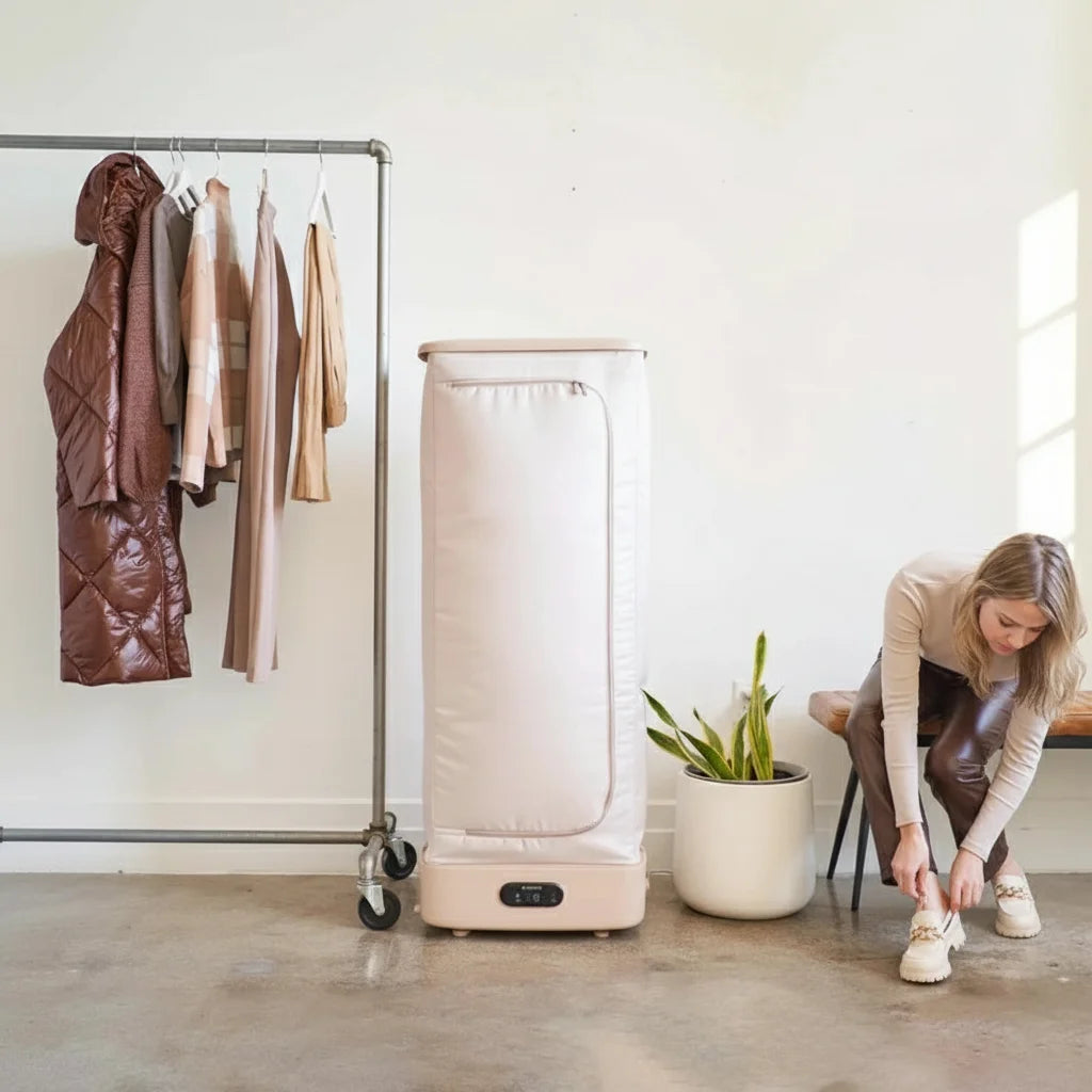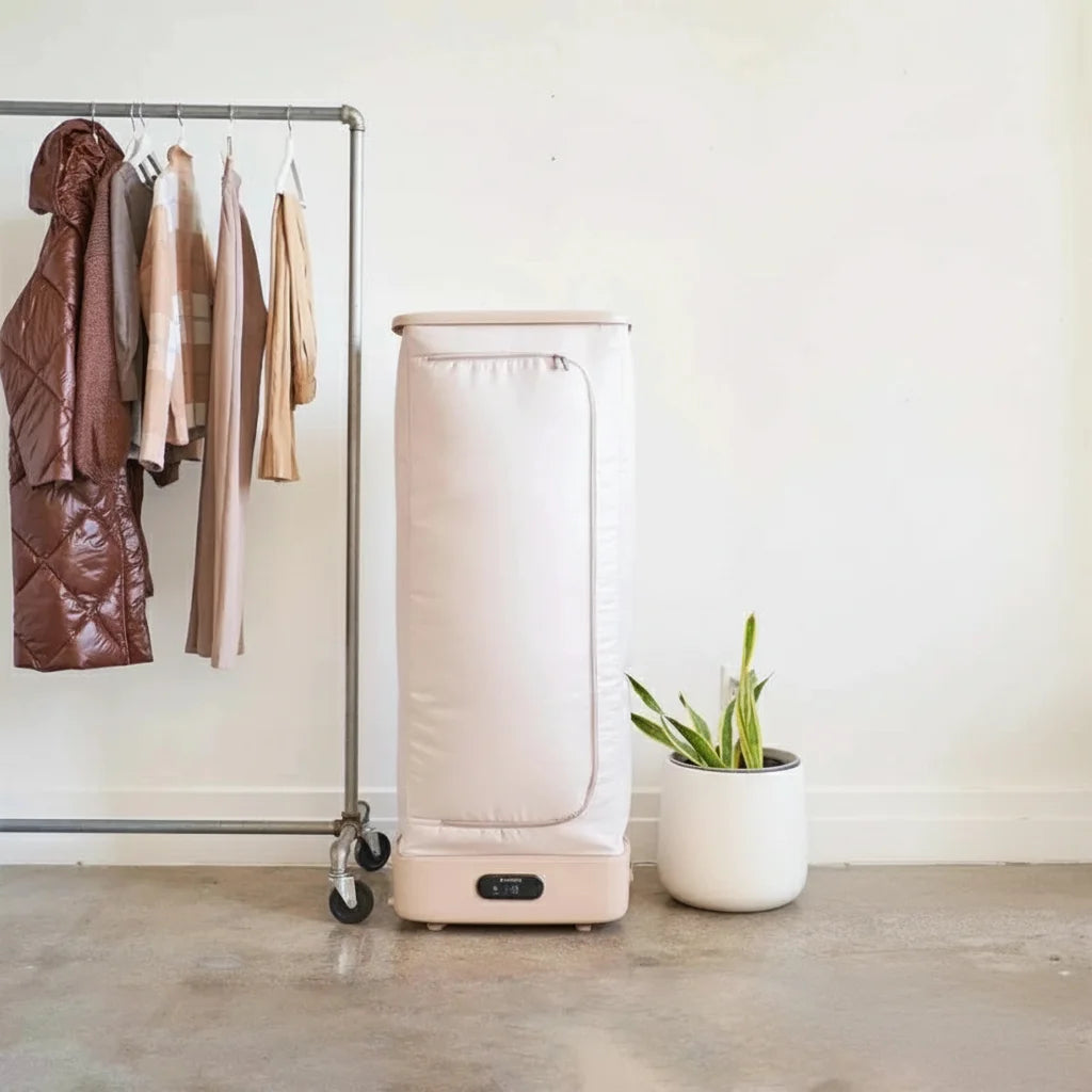 The Stēamio Steam Closet boasts a sleek, compact design perfect for urban living. It fits seamlessly into any modern home or apartment, offering powerful garment care without taking up excessive space. Enjoy premium convenience, even in smaller environments.